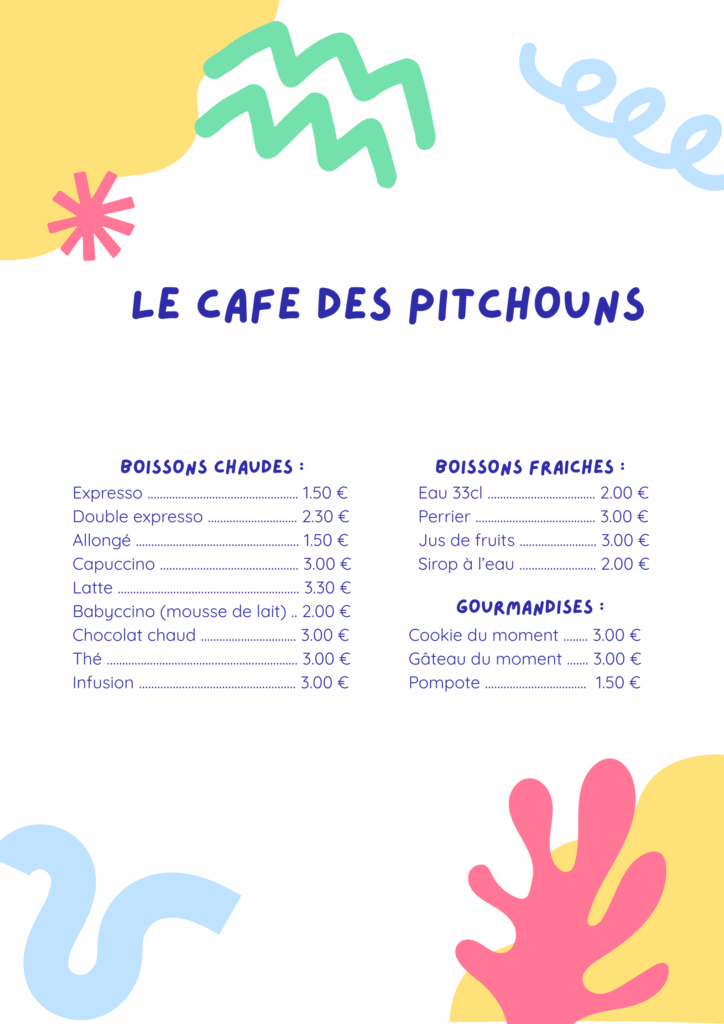 La carte propose thés parfumés, cafés, jus de fruits ainsi que des douceurs sucrées :